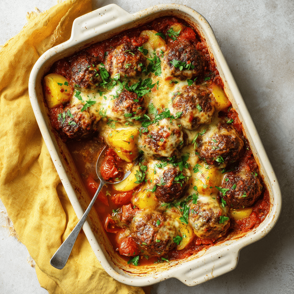 Looking for a hearty, satisfying dinner that’s easy to prep, feeds a crowd, and fills your home with the aroma of slow-roasted comfort? This Baked Meatballs and Potatoes in Rich Tomato Sauce is the perfect dish. Made with juicy homemade meatballs, tender roasted potatoes, and a garlicky, herby tomato sauce, everything bakes together in one dish—no frying, no fuss, and minimal cleanup.