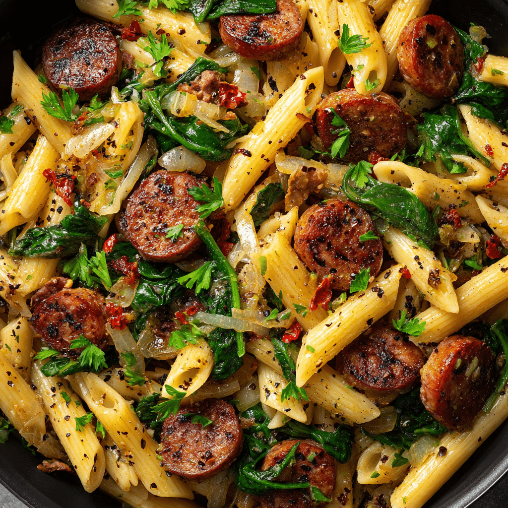 What makes it special is the balance of textures and flavors: the chewiness of the sausage, the silkiness of the sauce, the punch from the spices, and the starchiness of the pasta all come together in one comforting skillet meal. Add bell peppers or spinach if you want more veggies—or keep it pure and simple for a more indulgent plate.