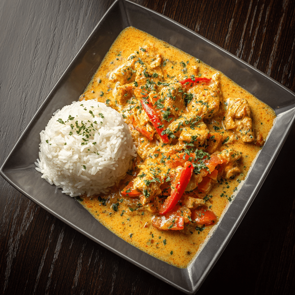 This curry is influenced by both Indian and Western cooking traditions—mild enough for those who don’t want a fiery heat, but still packed with aromatic spices and smooth creaminess.