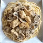 A creamy and savory spaghetti dish made with tender chicken, earthy mushrooms, and a rich, silky sauce of cream, Parmesan, and herbs. A cozy and comforting meal for any occasion.