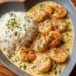 Shrimp is a weeknight hero: quick to cook, naturally flavorful, and packed with lean protein. Add butter, garlic, and cream, and it becomes an irresistible main course. This dish combines the comforting appeal of creamy pasta with the ease of a one-pan shrimp skillet—and instead of pasta, it’s served over rice for a gluten-free, wholesome foundation.