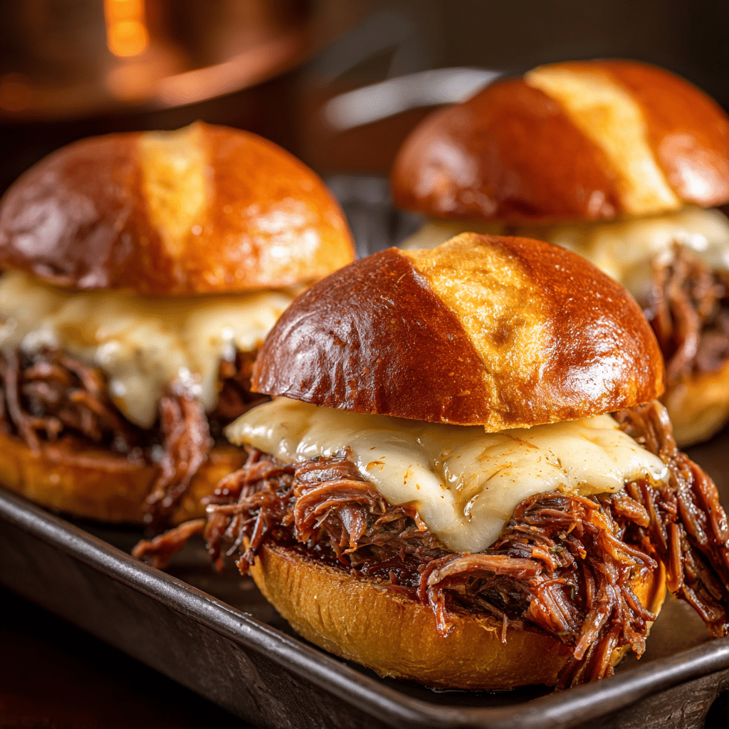 Yes! This recipe is perfect for meal prep. Store shredded beef and au jus separately in airtight containers. Reheat gently before assembling sandwiches.