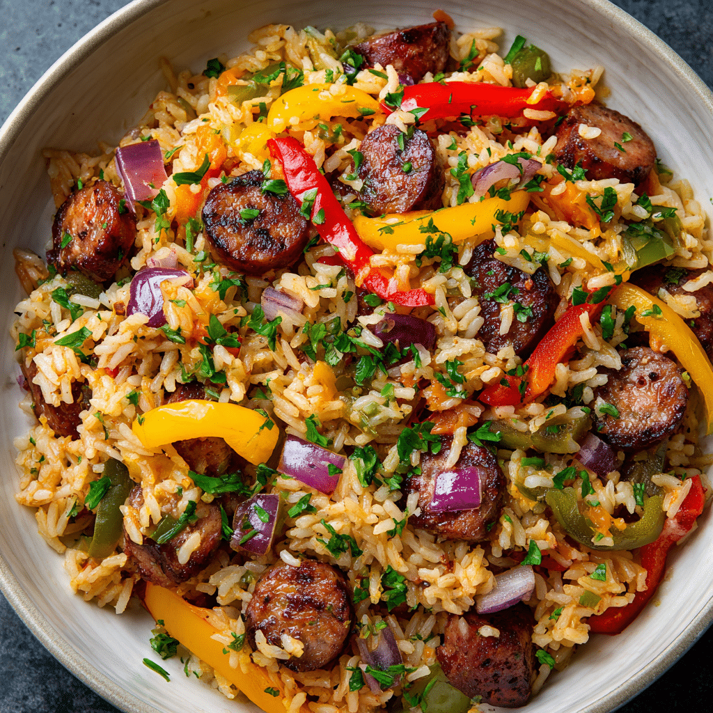A flavorful one-pot meal with smoky sausage, tender rice, and bold seasonings — perfect for busy weeknights or easy meal prep.