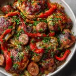 This dish balances protein, fats, and carbs in a satisfying way. Here’s a quick look at the nutritional profile per serving (based on bone-in thighs and sausage, no potatoes):