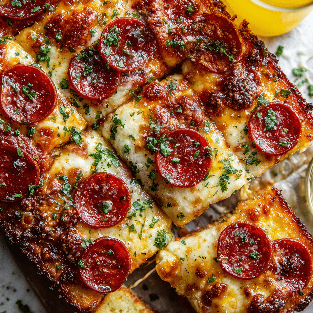 This recipe strikes a balance between thick, fluffy crust and the crisp golden edges we all crave. And because it’s made in a sheet pan, cleanup is as easy as the prep.