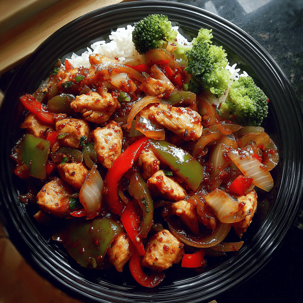 This Spicy Garlic Chicken Stir-Fry with Peppers & Rice is a fast, one-pan meal bursting with garlicky heat, juicy chicken, and tender-crisp bell peppers—all tossed in a fiery, sticky sauce and served over fluffy rice. Perfect for busy weeknights, meal prep, or satisfying takeout-style cravings at home, this dish is ready in 30 minutes or less and guaranteed to become a go-to favorite.
